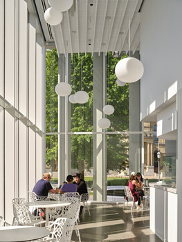 The Pavilion reflects evolving social values, positioning the gallery as both cultural institution and civic commons. It transcends program constraints by offering spaces for gathering, storytelling, and respite alongside art. Sustainable strategies include solar performance modelling that reduced heat gain by 43%, high-performance wall assemblies, and the Pavilion’s role as a thermal buffer to reduce operating energy demand.