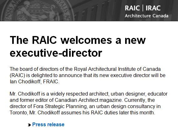 Ian Chodikoff, FRAIC, à titre de directeur général.