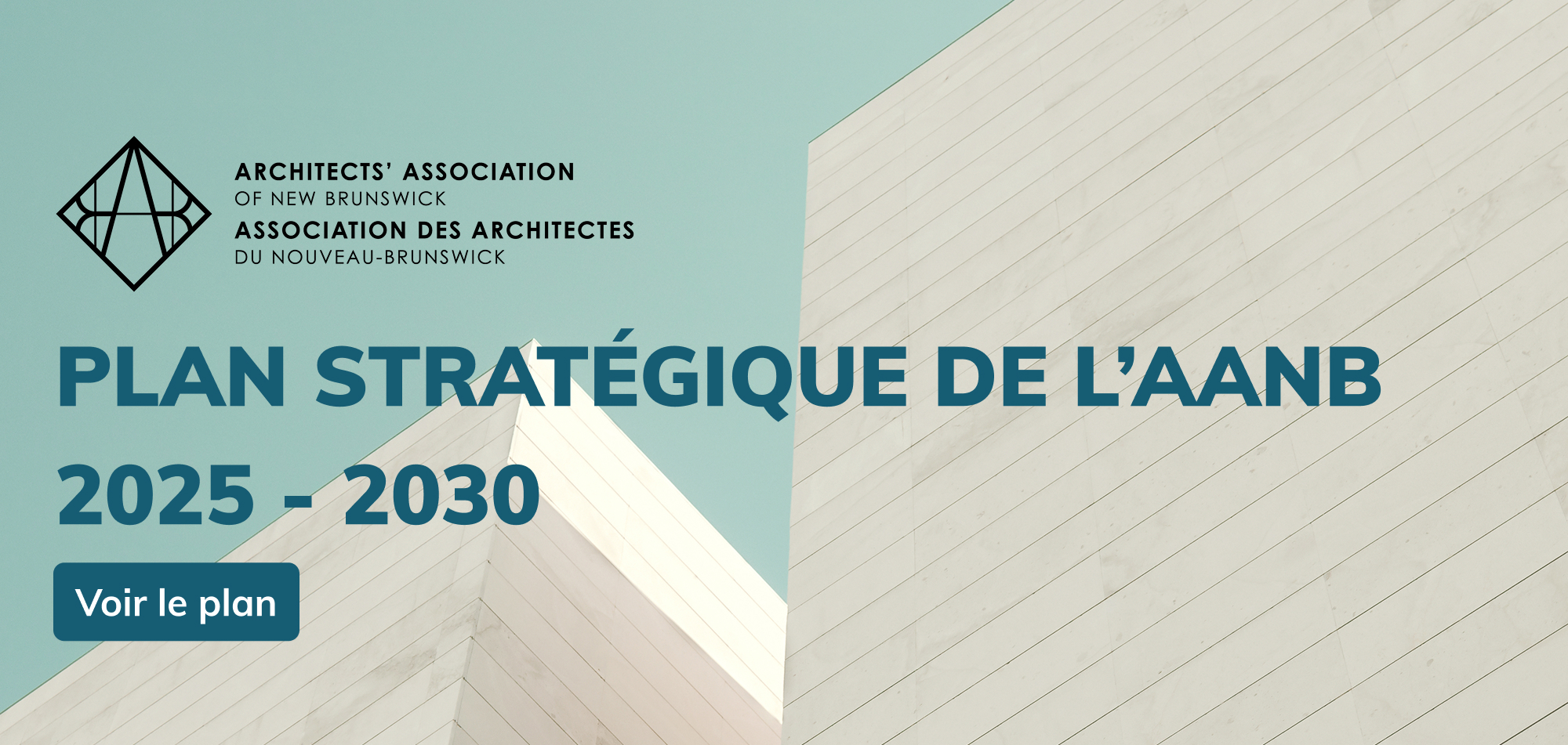 Fondée en 1933, l’Association des architectes du Nouveau-Brunswick (AANB) est un organisme professionnel autoréglementé qui a pour but de promouvoir et de maintenir les normes d’architecture au Nouveau-Brunswick, de régir et de réglementer les fournisseurs de services d’architecture, ainsi que de protéger le public et les membres de la profession. La loi et les règlements administratifs de l’AANB, adoptés par le gouvernement du Nouveau-Brunswick, établissent les lignes directrices pour la réglementation des membres de l’AANB et de la profession d’architecte au Nouveau-Brunswick.